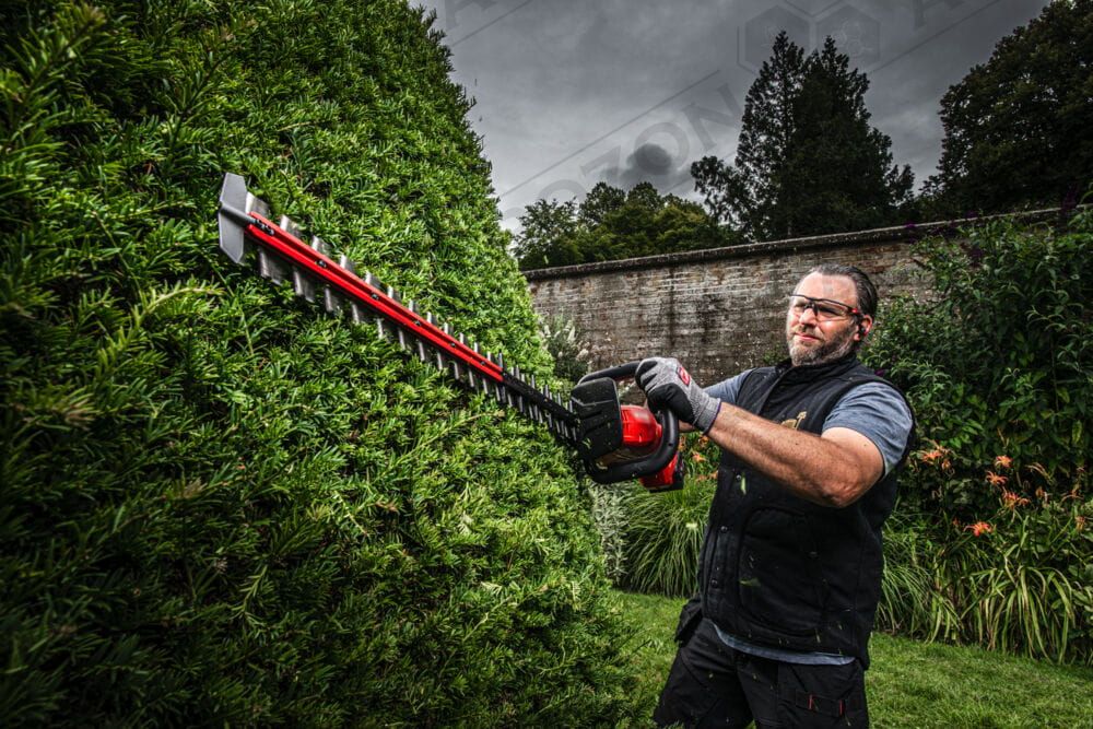 Двойная заточка, вращающиеся в противоположных направлениях лезвия длиной 60 см обеспечивают чистый срез и позволяют удалять более густую поросль.