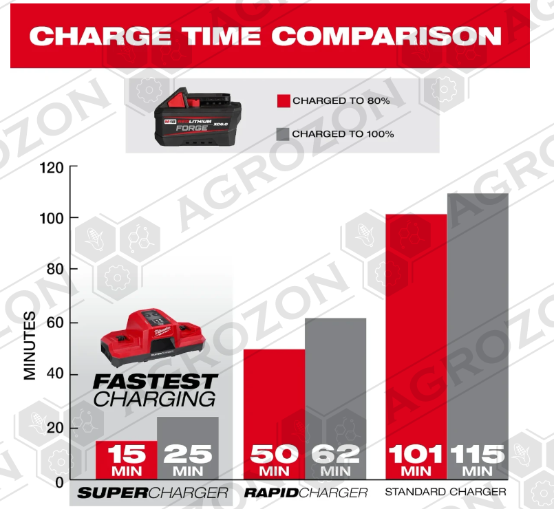 REDLITHIUM™ FORGE™ забезпечує найпотужнішу, найшвидшу зарядку та найтриваліший термін служби акумуляторів у REDLITHIUM™