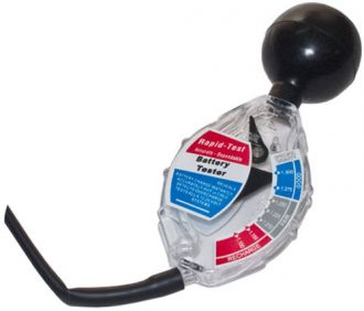 -Призначений для вимірювання щільності акумуляторної рідини в батареях вольтажом 6/12/24 В -Має шкалу в одиницях густини кг/м.куб, за допомогою яких легко визначити стан електроліту. -Корпус ареометра складається з пластикової ємності, гумового балона та шланга за допомогою яких всмоктується електроліт. При всмоктуванні необхідної кількості рідини стрілка всередині пластикової ємності покаже певне значення на шкалі, що відповідає щільності рідини. -Для проведення точніших вимірювань рекомендується працювати при температурі 20+/-2°C.