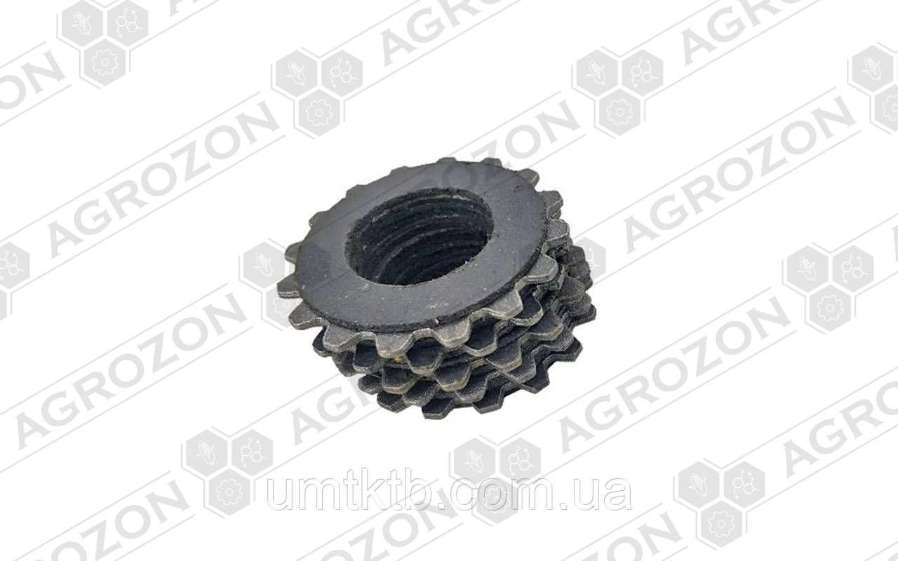 Конструкция: Имеет центральное отверстие для установки на вал промежуточной опоры и наружную часть для контакта с обоймой подшипника или другими элементами опоры. Количество и форма шлицев или других элементов крепления могут варьироваться в зависимости от модели трактора и типа промежуточной опоры.