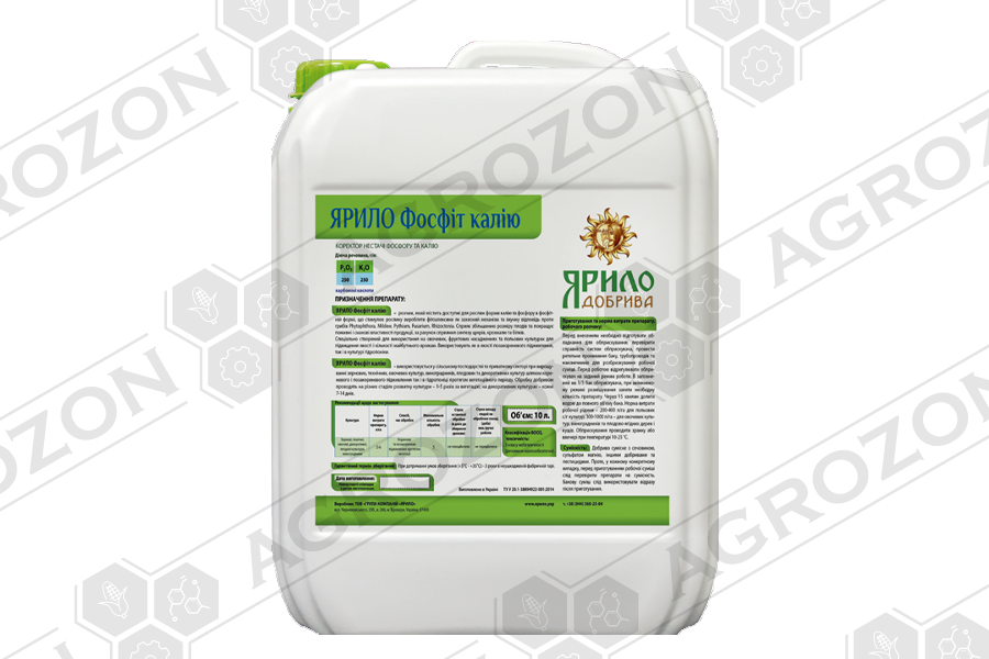 Ярило Фосфіт калію – концентроване добриво, яке містить у своєму складі фосфор у формі фосфіту. Фосфіт, за рахунок синтезу фітоалексинів, забезпечує стійкість рослин до збудників грибних хвороб викликаних ооміцетами та сприяє формуванню кореневої системи. Калій, у складі продукту, забезпечує стійкість рослин до кліматичних стресів.
