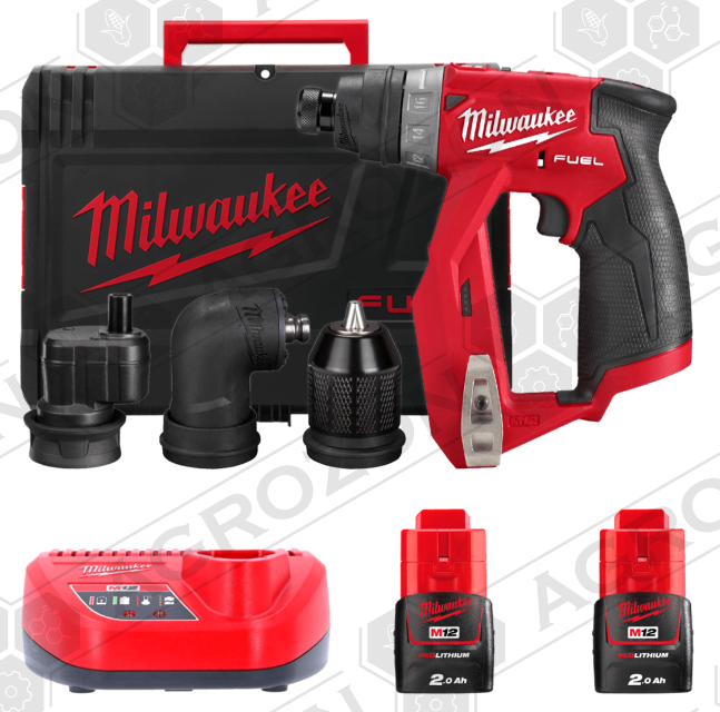 - Дриль-шурупокрут акумуляторний MILWAUKEE, M12 FDDXKIT-202X, 34 Нм (+ зар.пр., 2 акум. Х2Аг, 4 насад., HD кейс)