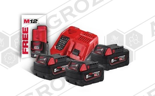- Енергокомплект акумуляторний Li-Ion MILWAUKEE, M18 NRG-503 (+заряд.пристрій, 3 акум. M18 В5(5Аг), 1 акум. M12 B2(2Аг)