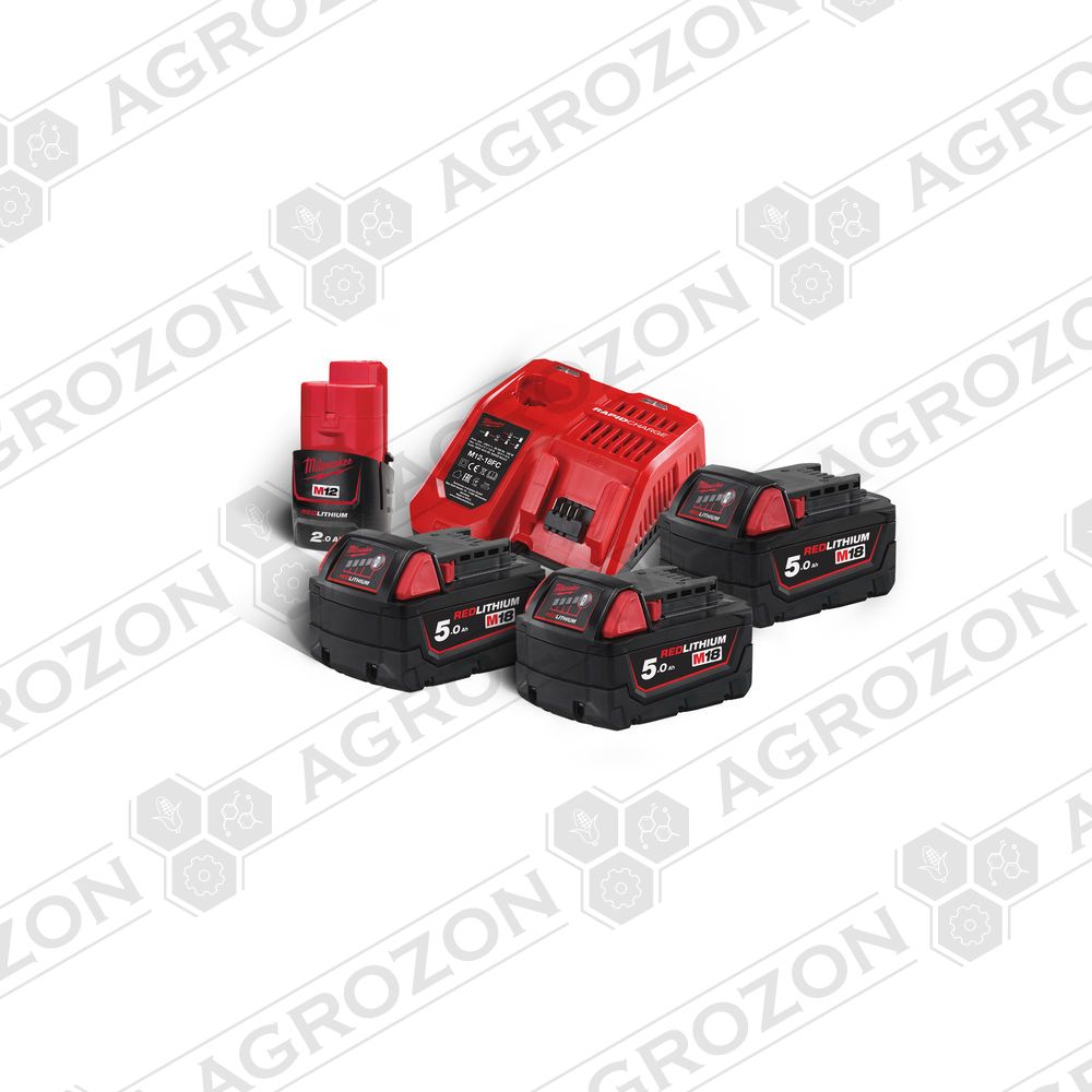 Енергокомплект акумуляторний Li-Ion MILWAUKEE, M18 NRG-503 (+заряд.пристрій, 3 акум. M18 В5(5Аг), 1 акум. M12 B2(2Аг)