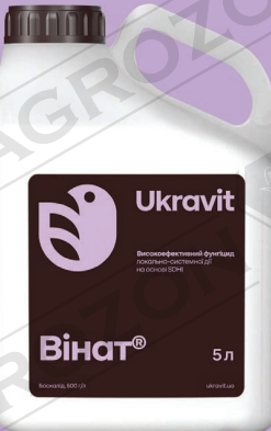 Вінат, контактно-системний фунгіцид профілактичної та терапевтичної дії для захисту проти альтернаріозу, іржі, сірої гнилі, склеротиніозу, фомозу на посівах соняшнику. Альтернаріозу, борошнистої роси, сірої гнилі, склеротиніозу, фомозу, циліндроспорозу на посівах ріпаку. Іржі, антракнозу, септоріозу на посівах сої. Зареєстровані норми використовувати лише за масового епіфітотію хвороб. Рекомендована норма застосування препарату для профілактики хвороб або в баковій суміші з іншим фунгіцидом 0,2-0,3 л/га.