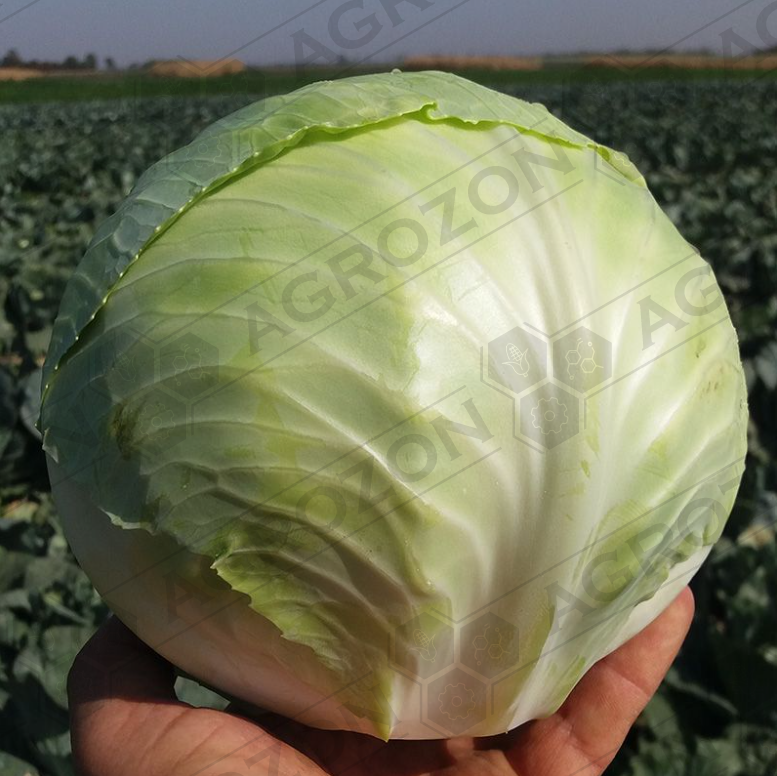 Плід: головка щільна, округлої форми, зеленого кольору, вага - 2.5-4 кг