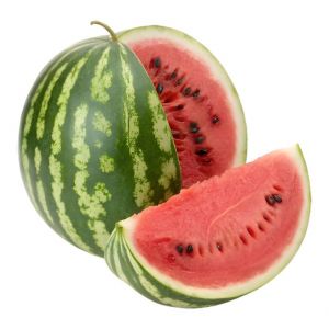 Плід: округла форми, вага - 7-10 кг, однорідні, шкірка смугаста, блискуча, м'якоть насиченого червоного кольору, хрустка, солодка