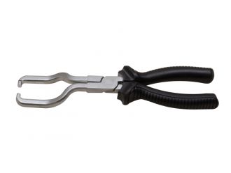 Щипці для демонтажу паливних ліній KING TONY 9AB11. Щипці призначені для зняття конекторів паливних фільтрів автомобілів. Використовуються для роботи з автомобілями марок Volkswagen, Audi, Ford, Fiat, Opel, BMW, Mercedes-Benz, GM. Загальна довжина: 228 мм.