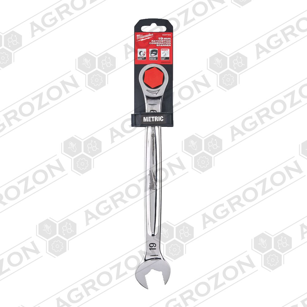- Ключ рожково-накидний метричний хромований MAX BITE MILWAUKEE з храповиком, 19мм