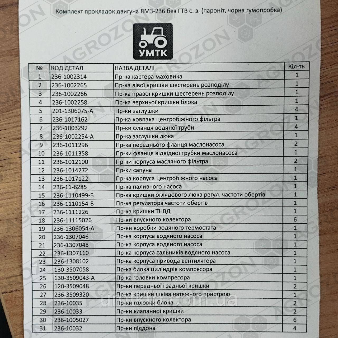 Комплект прокладок двигателя ЯМЗ-236 без РТИ с.о. Премиум вы можете заказать на нашем сайте или связавшись с нашими менеджерами по телефону. Мы предлагаем широкий ассортимент высококачественных запчастей и ремонтных комплектов для двигателей ЯМЗ и оперативную доставку по всей Украине.
