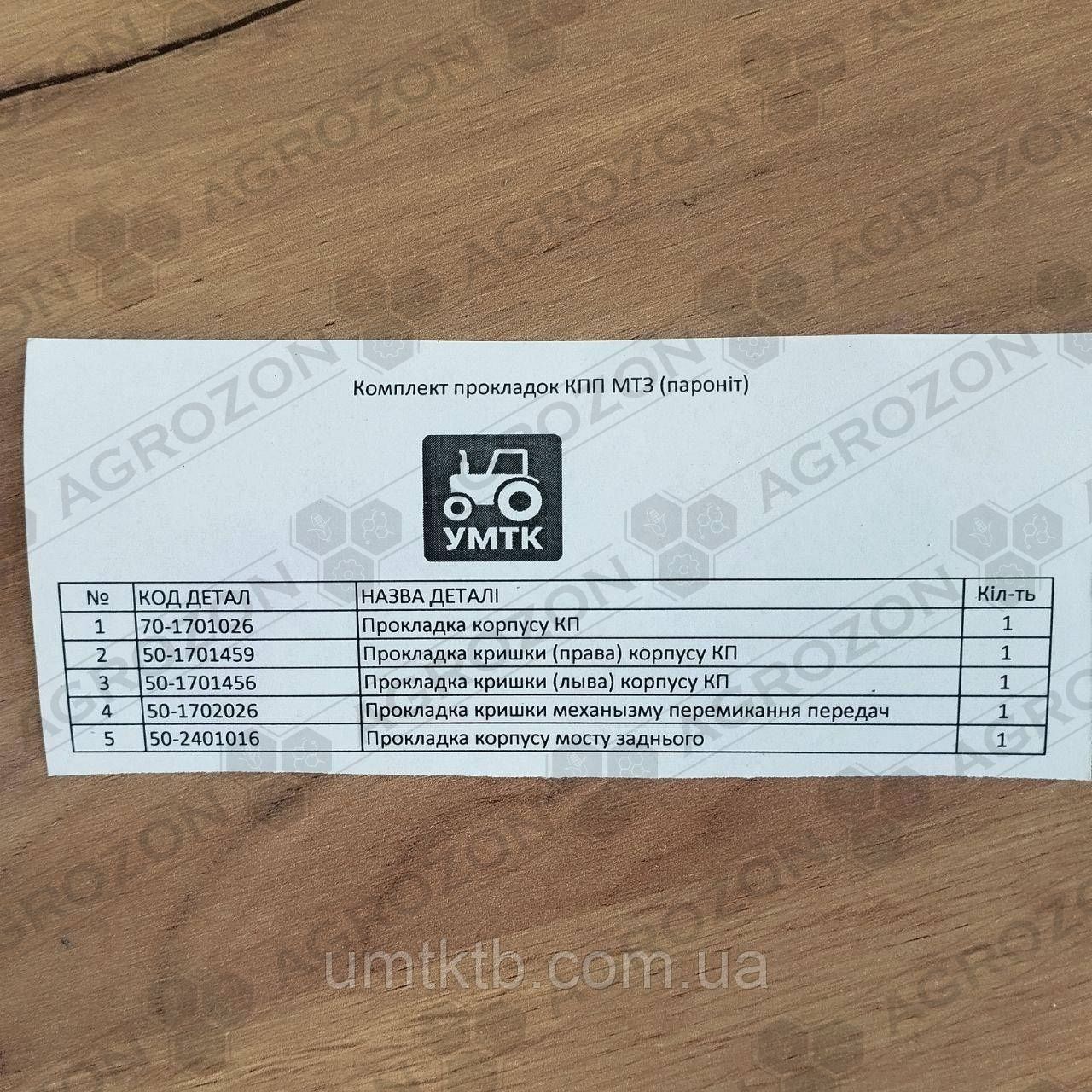Комплектация: Включает полный набор прокладок, необходимых для герметизации всех разъемных соединений КПП МТЗ. Типовой перечень прокладок: