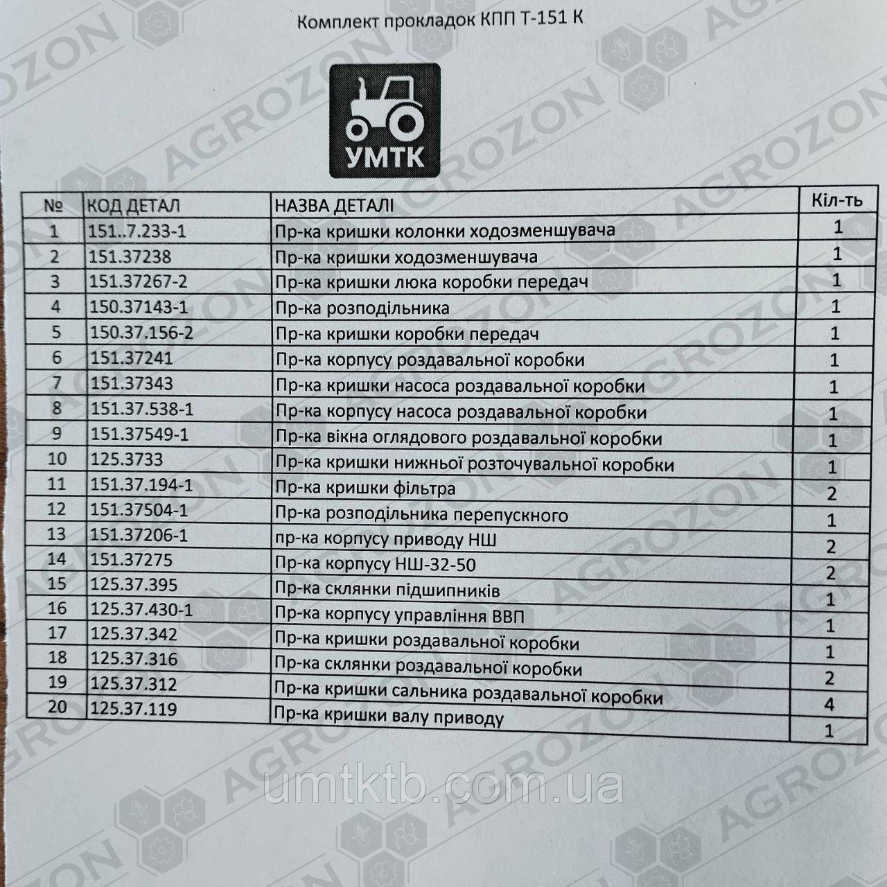 Комплектация: Включает полный набор прокладок, необходимых для герметизации всех разъемных соединений КПП Т-151К. Типовой перечень прокладок: