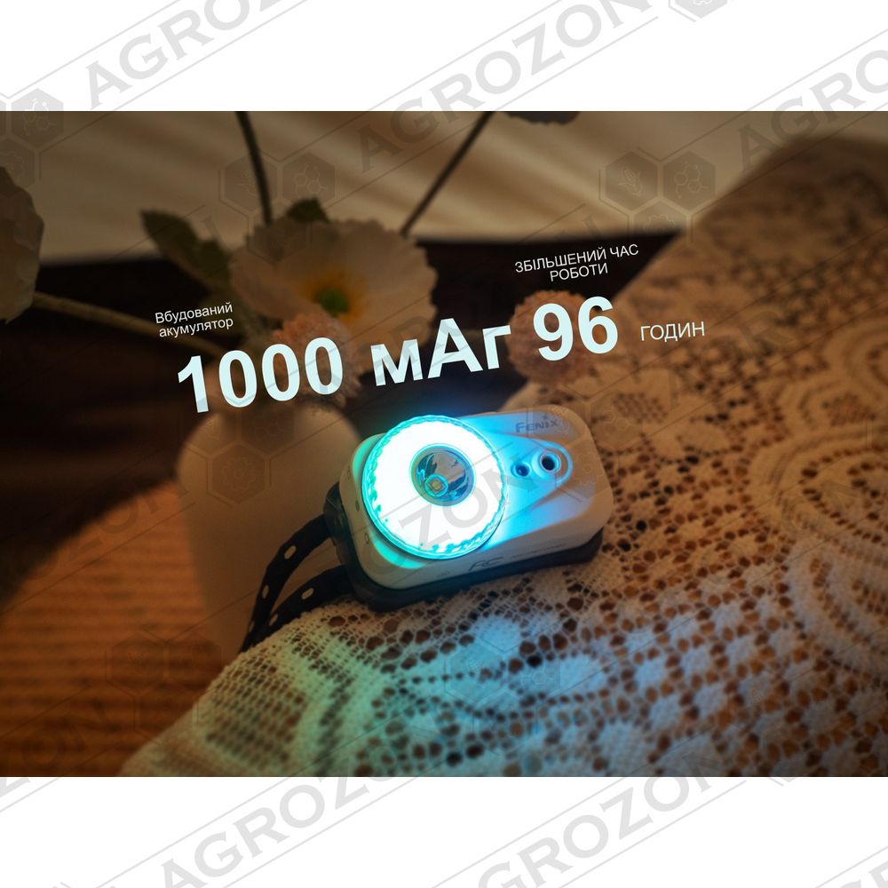 Ліхтар живиться від літій-іонного акумулятора 1000 мА·год. Робоча напруга становить 3.0–4.2 В з допустимою межею 2.8–4.2 В, що забезпечує стабільну роботу пристрою на всіх режимах. Індикатор рівня заряду повідомляє про стан акумулятора та низький заряд.