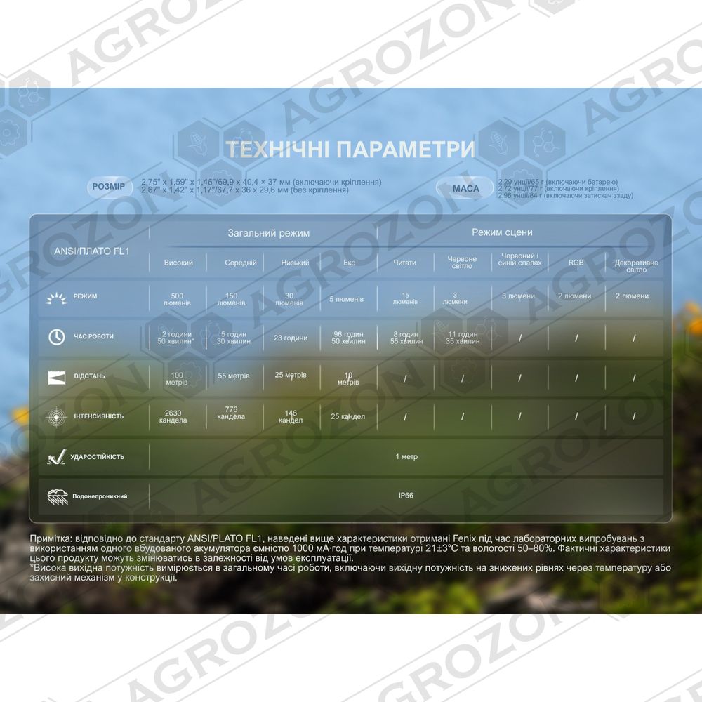 Зверніть увагу! Час роботи у високому режимі вказано з урахуванням тривалості світіння на менш яскравих режимах — ліхтар автоматично знижує потужність променя, якщо спрацьовує захист від перегрівання.