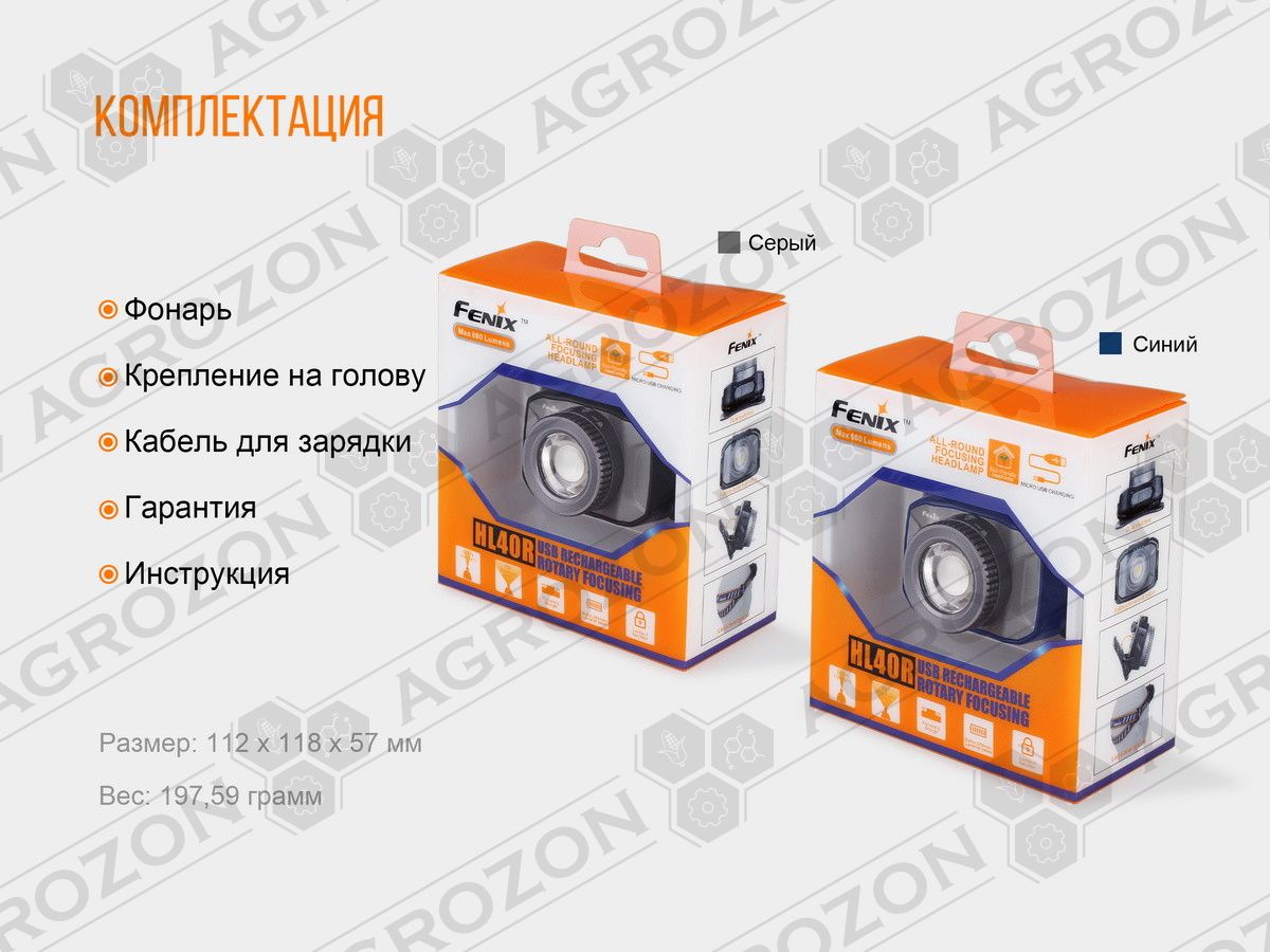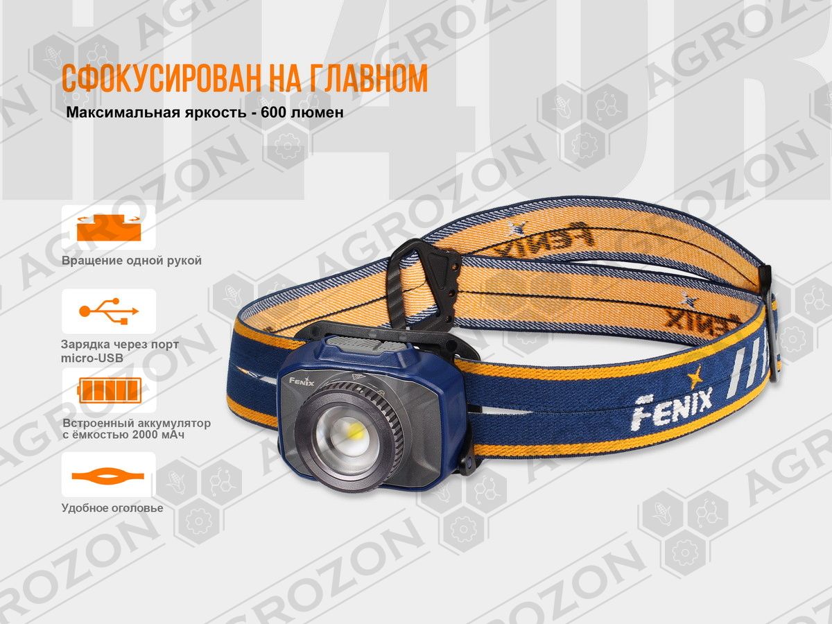 Fenix HL40R – налобного ліхтаря типу. Він укомплектований еластичним ремінцем, за допомогою якого кріпиться на голову або на захищає її каску. Потилична стрічка цього ремінця зроблена подвійний, що сприяє більш надійної фіксації.