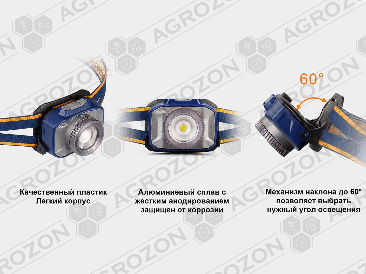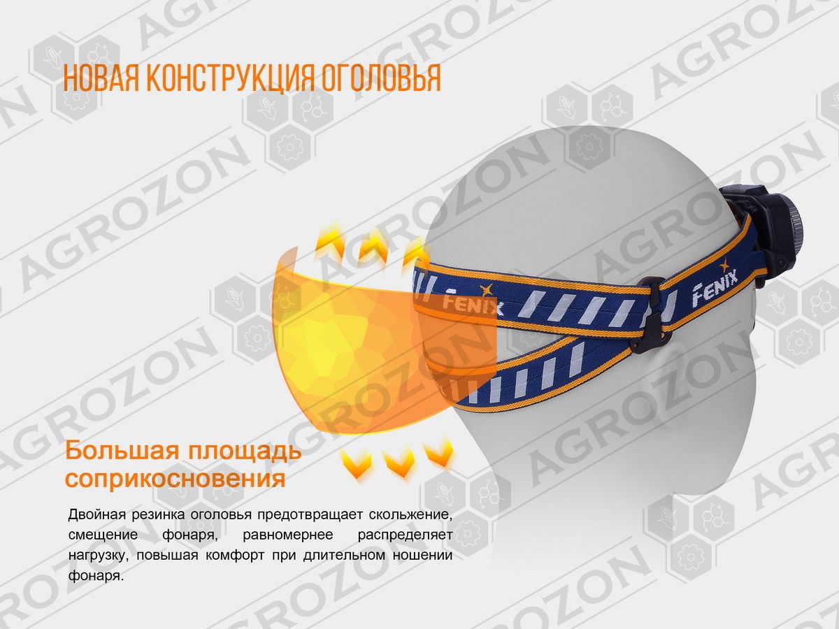 Елементи для кріплення ліхтаря до наголовному ремінцю виготовляються з пластику. Для цього обрана різновид пластику з підвищеною міцністю. Кріплення дозволяють повертати ліхтар по вертикалі в межах 60 градусів. Ремінець на голову легко регулюється за розміром, а завдяки роздвоєною потиличної частини, він надійно кріпиться і не сповзає.