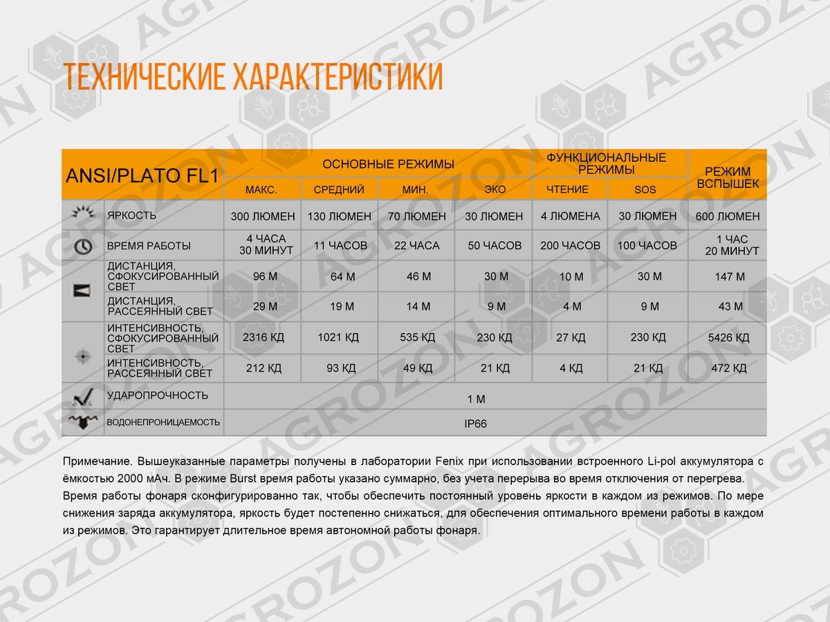 | Яскравість | 300 люмен | 130 люмен | 70 люмен | 30 люмен | 4 люмена | 30 люмен | 600 люмен | |