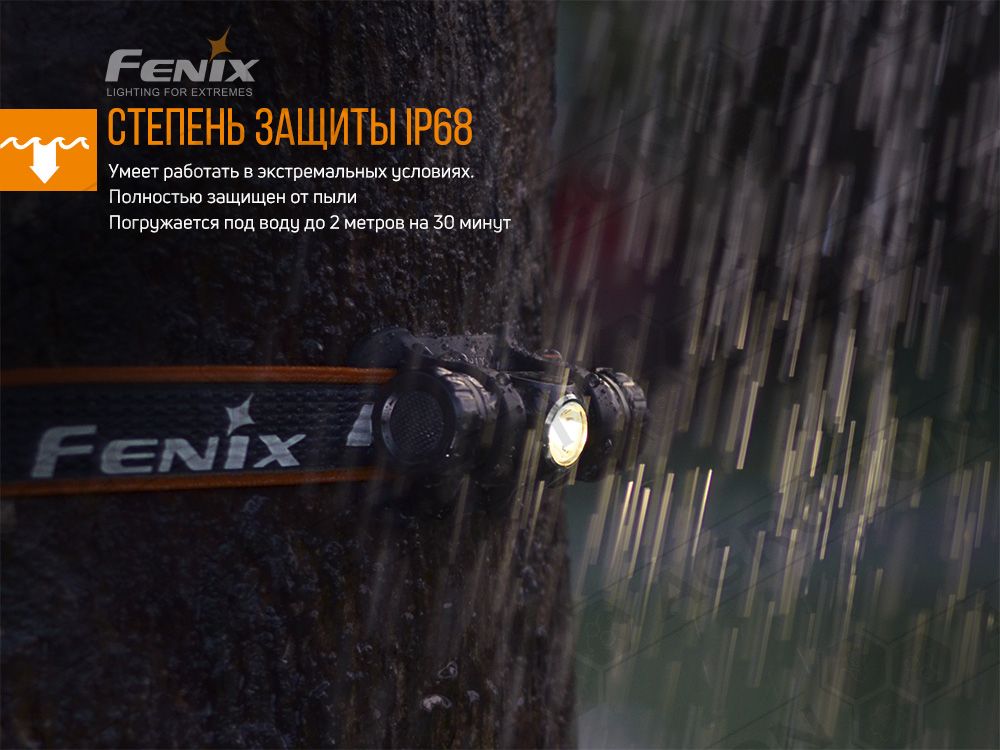 Модель Fenix HM23 отримала якісний і міцний корпус з алюмінію. Він забезпечить захист від пошкоджень механічного характеру, а також, зважаючи на водонепроникність, захистить ліхтар від намокання.