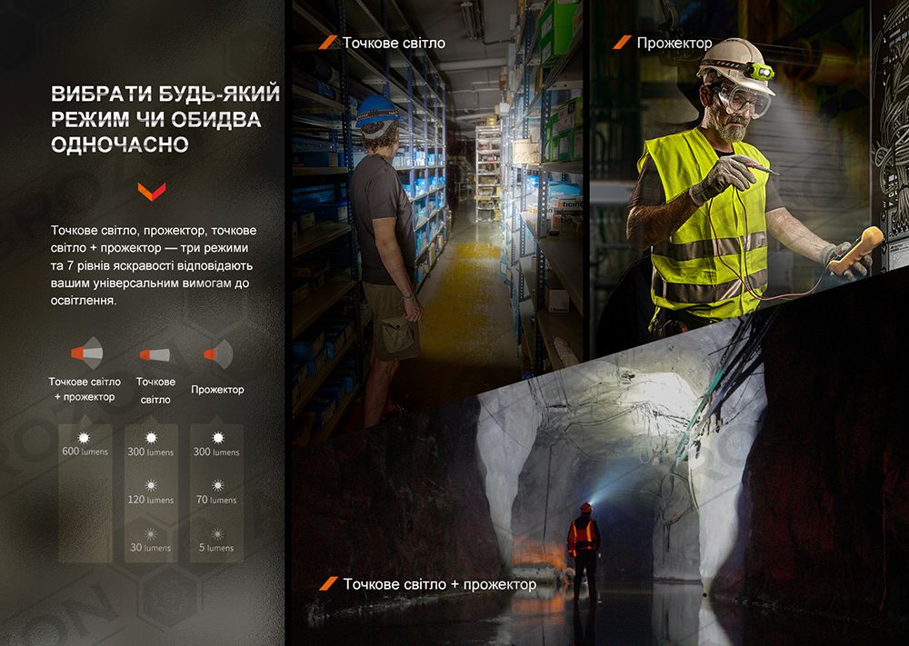 Близький + Далекий, Turbo. Світловий потік досягає 600 люменів, час роботи – 3 години та 49 хвилин. Дистанція променя – 100 метрів, інтенсивність потоку – 2280 кандел.