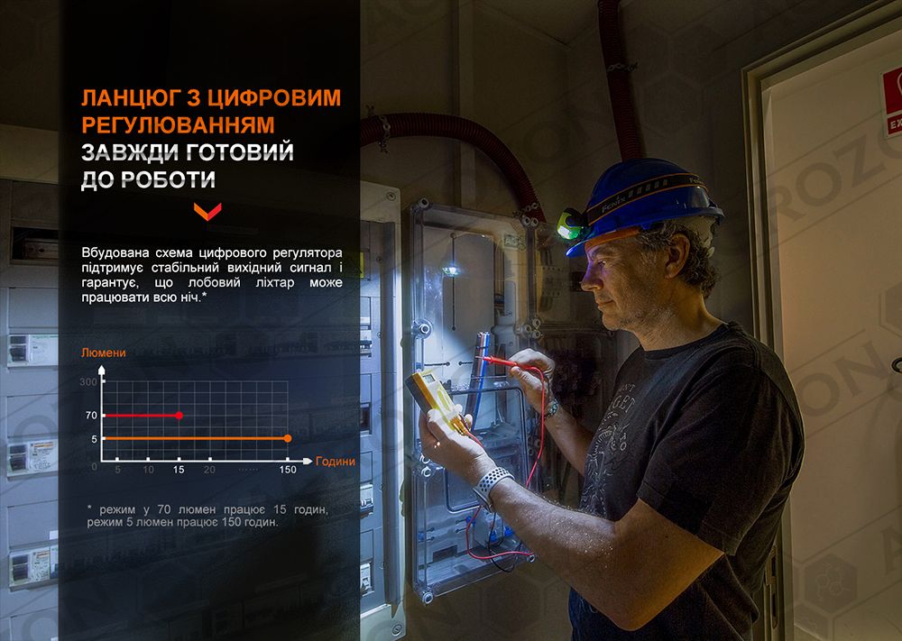 Примітка. Зазначені характеристики роботи ліхтаря засновані на результатах лабораторних дослідів. Для цього використовували акумулятор вбудований літій-іонний ємністю 2000 мАг при температурі 21+-3 градуси Цельсія та вологості повітря 50%-80%. Реальні параметри світіння моделі можуть змінюватись в залежності від застосовуваного елемента живлення та умов зовнішнього середовища.
