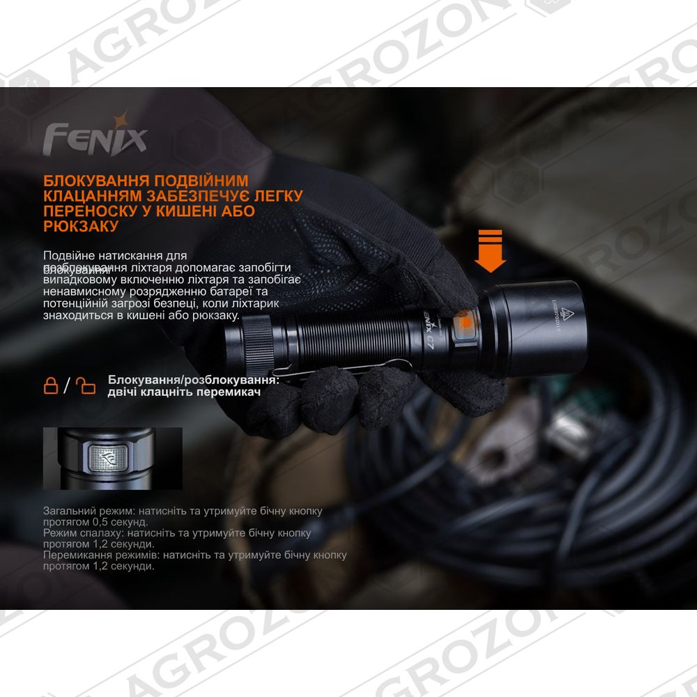 - ручний ліхтар Fenix з вбудованим магнітом та знімною кліпсою зі сталі;