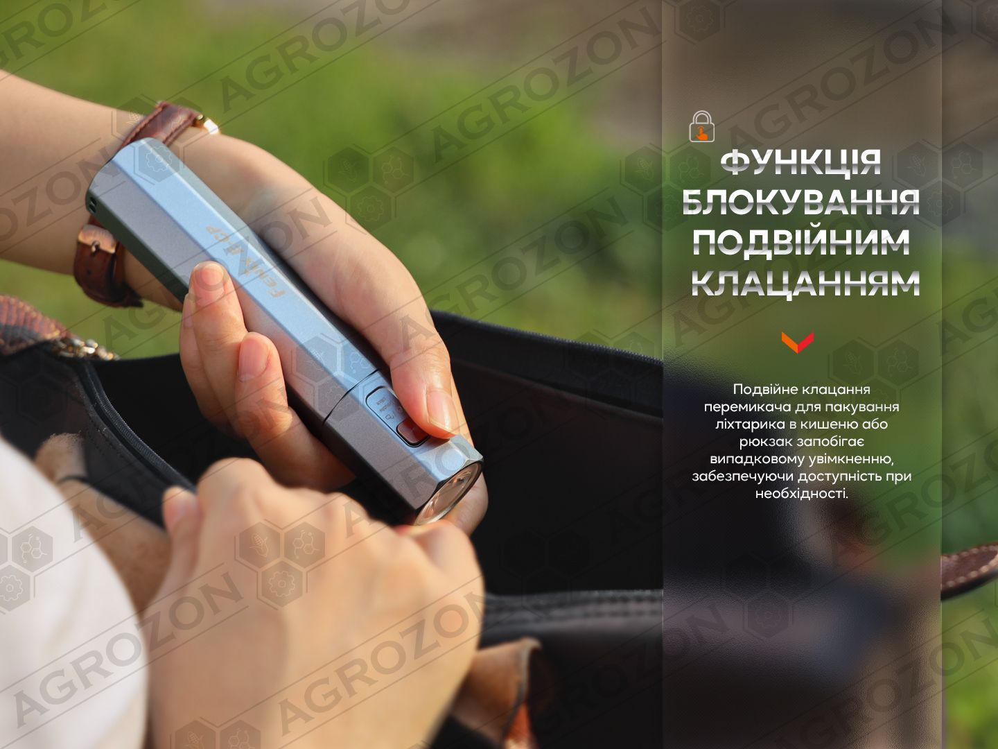- можливість заблокувати ліхтар;