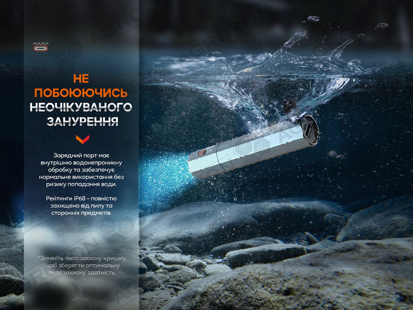 - водостійкість: IP68;