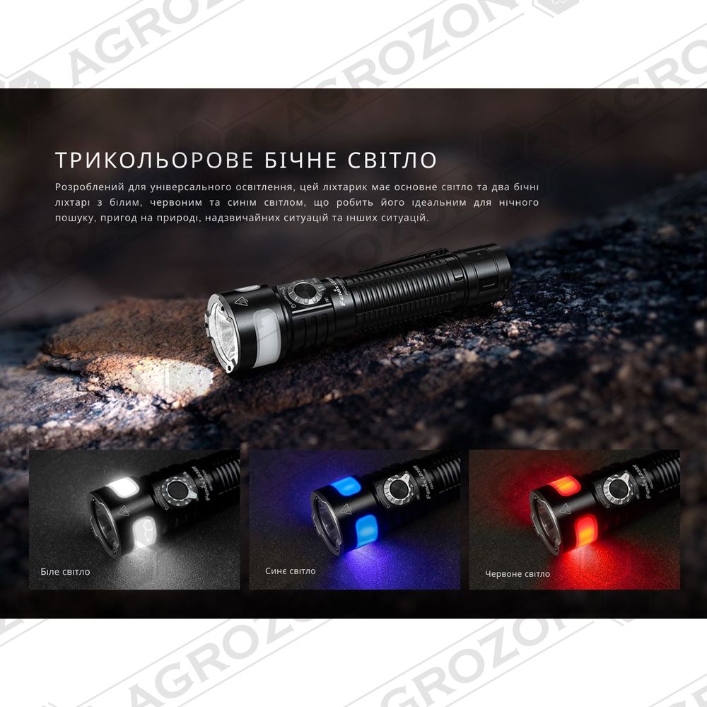 Багатофункціональний ліхтар Fenix LD35R випромінює світло у 3 відтінках (біле, червоне та синє), тому актуальний у різних умовах: під час активного відпочинку на природі, виконання службових або ремонтних робіт та в повсякденних ситуаціях.