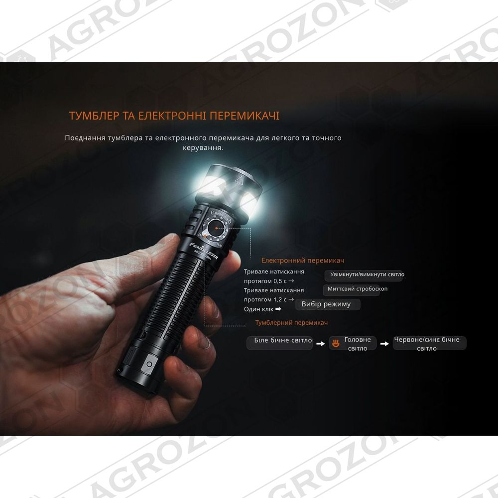 У Fenix LD35R є 15 режимів, поділених на групи: класичне переднє освітлення та бічне світло.