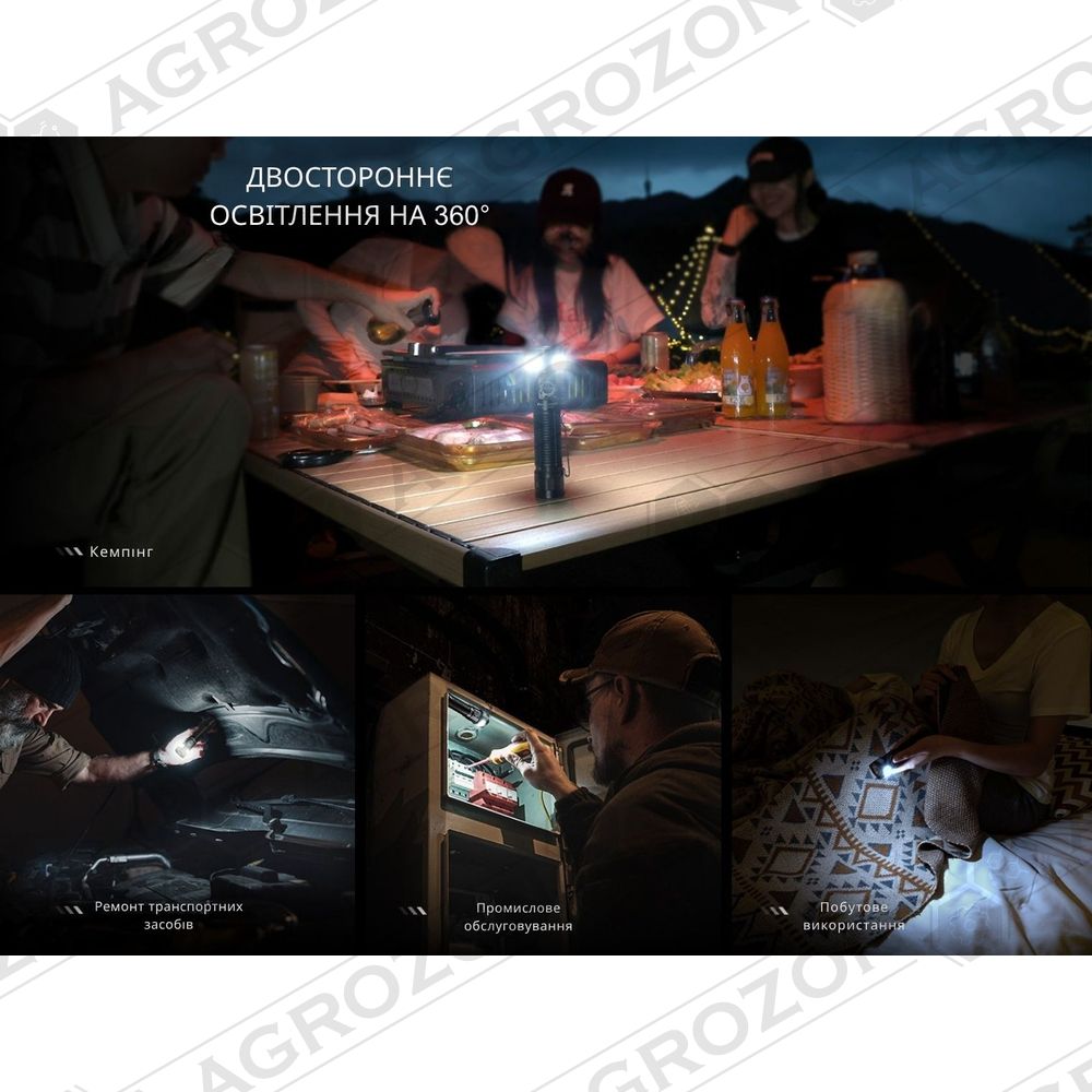 - З обох боків головної частини вбудовані світлодіодні стрічки COB, які генерують світло на 180° або 360° залежно від вибраного режиму.