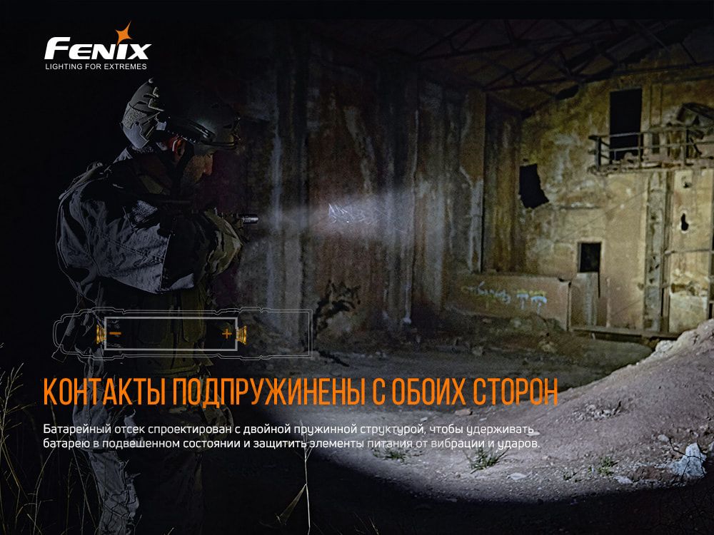 Потрібно згадати, що Fenix PD36TAC захищений від перегрівання корпусу. При роботі акумулюється велика кількість тепла. Тому передбачили функцію скорочення яскравості. Вона за замовчуванням активується, якщо температура корпусу перевищує 60 градусів Цельсія. Коли температура знижується, можна знову вибирати високі режими.