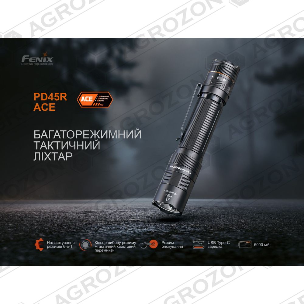 Ліхтар Fenix PD45R ACE є частиною серії ACE (Advanced Command Edition) — спеціальної лінійки для тактики, службових цілей та повсякденного застосування.