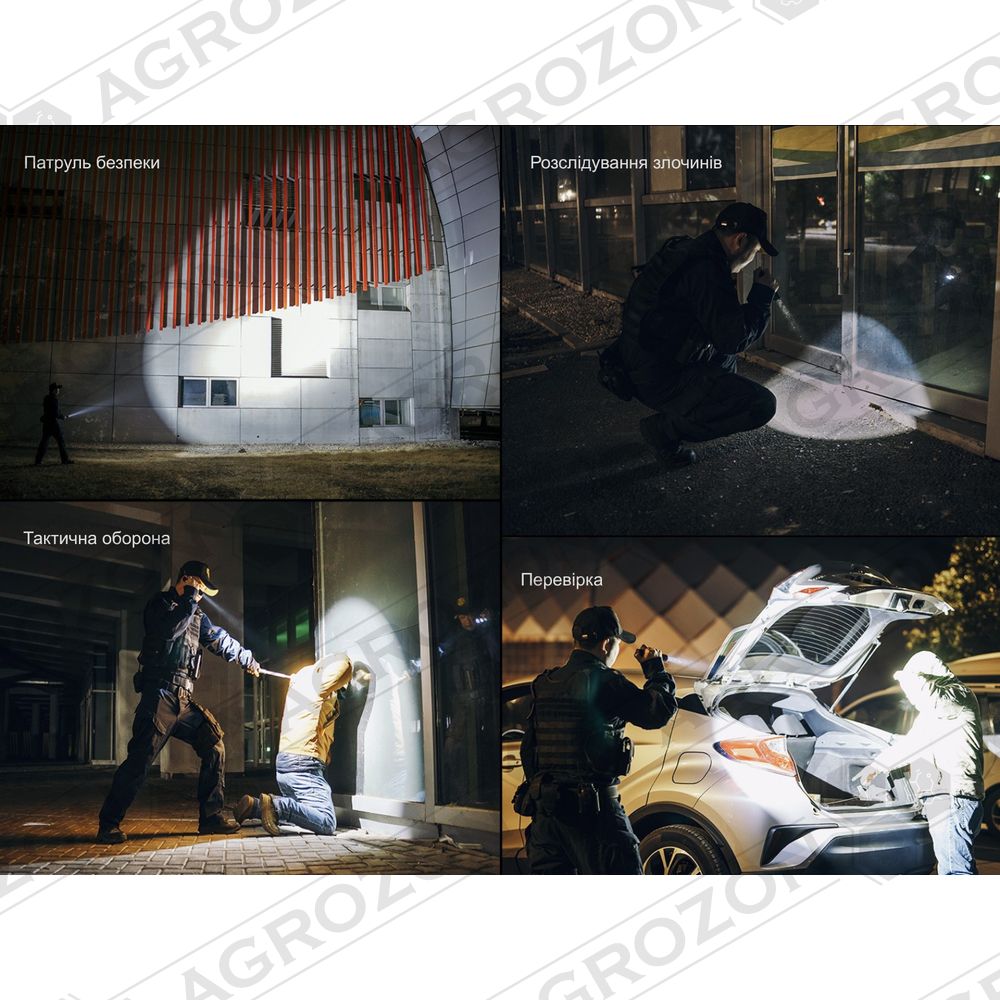 Під лінзою із загартованого скла знаходиться один холодний білий світлодіод Luminus SFT70 Gen2 з колірною температурою ~6500К. Діод генерує концентрований промінь максимальною яскравістю 3200 лм і дальністю до 410 м — вражаючі показники, що дозволяють детально освітити великий простір і швидко оцінити ситуацію в критичний момент.