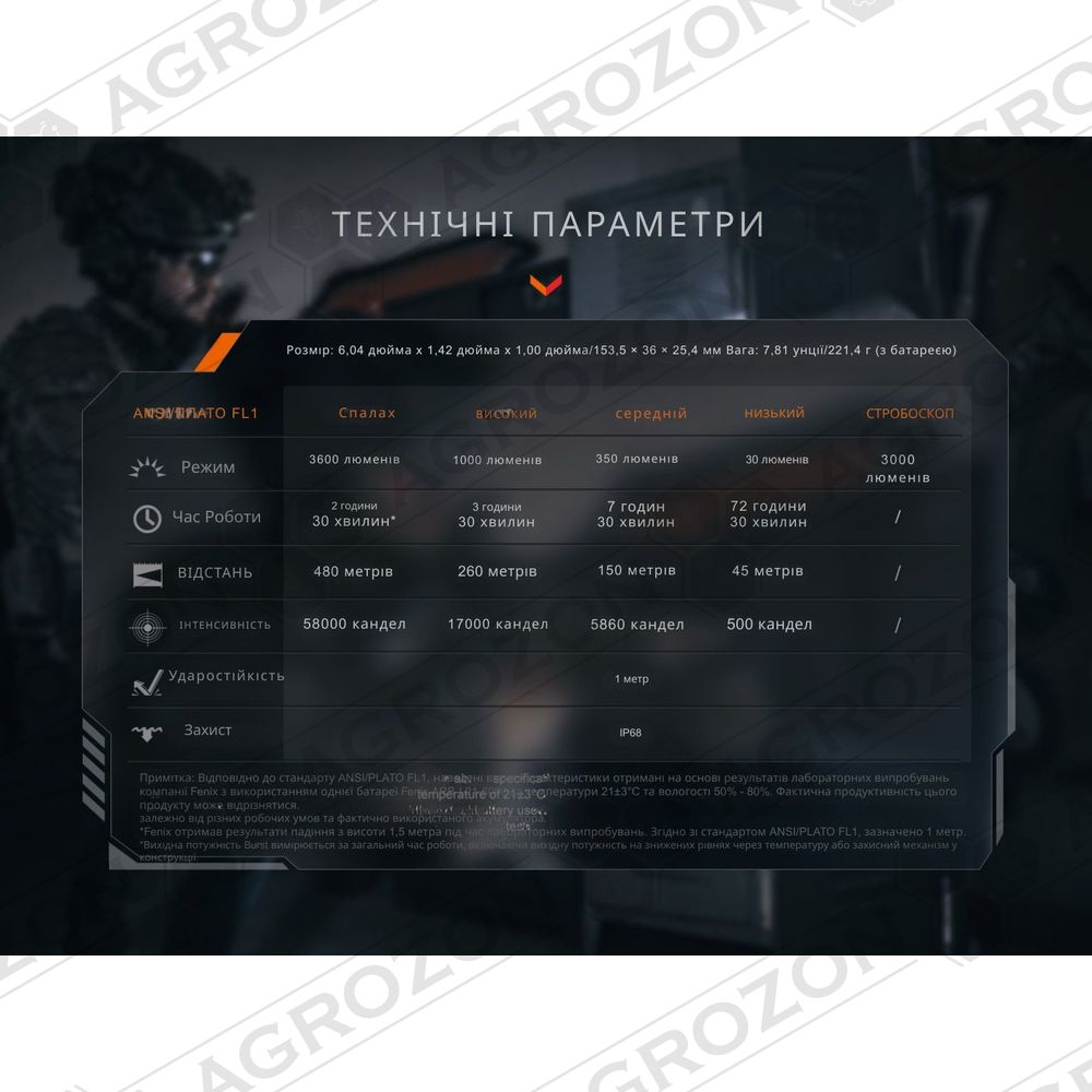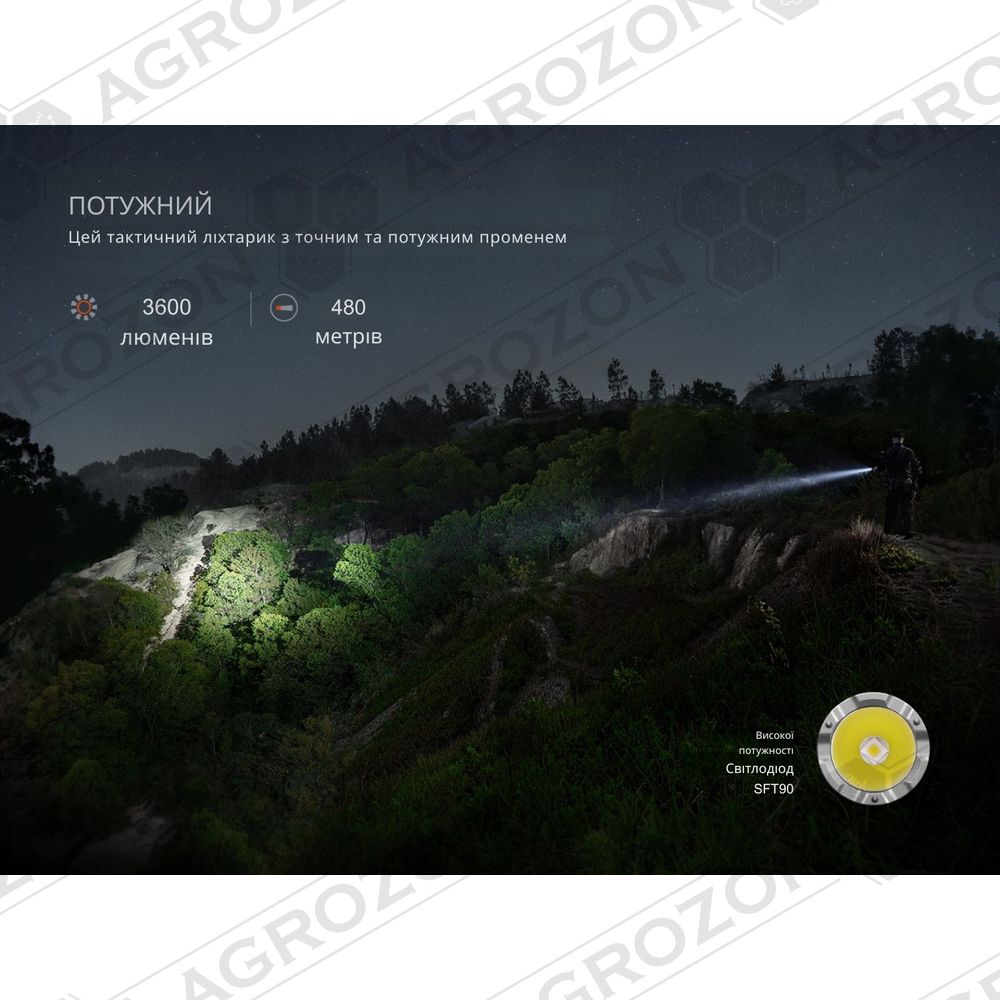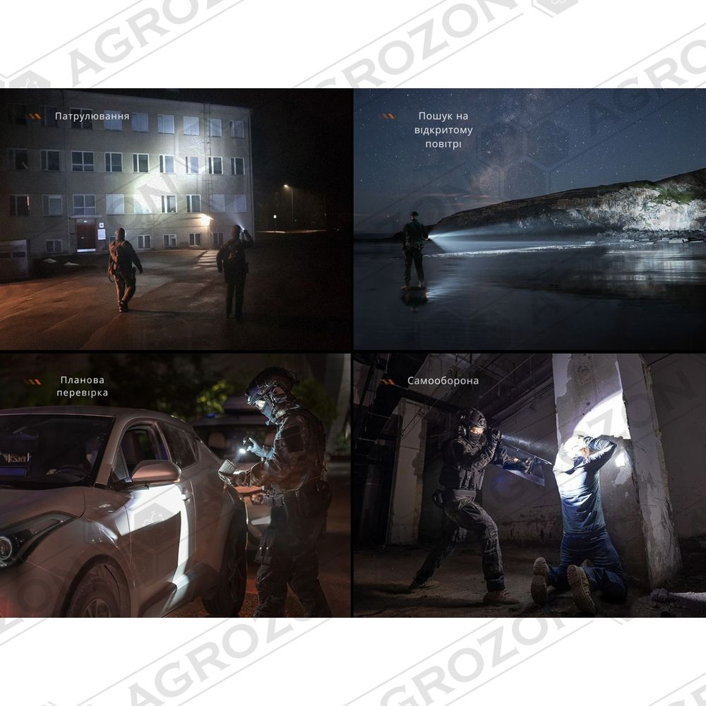 Ви можете використовувати ліхтар як ручне джерело світла або кріпити його на зброї за допомогою одного із сумісних кріплень: ALG-00, ALG-15, ALG-16, ALG-18. Пружні контакти підтримують стабільну роботу пристрою навіть за високої віддачі під час стріляння, а система APF знижує енергоспоживання без шкоди для потужності, продовжуючи час роботи моделі на одному заряді до 72 год 30 хв.