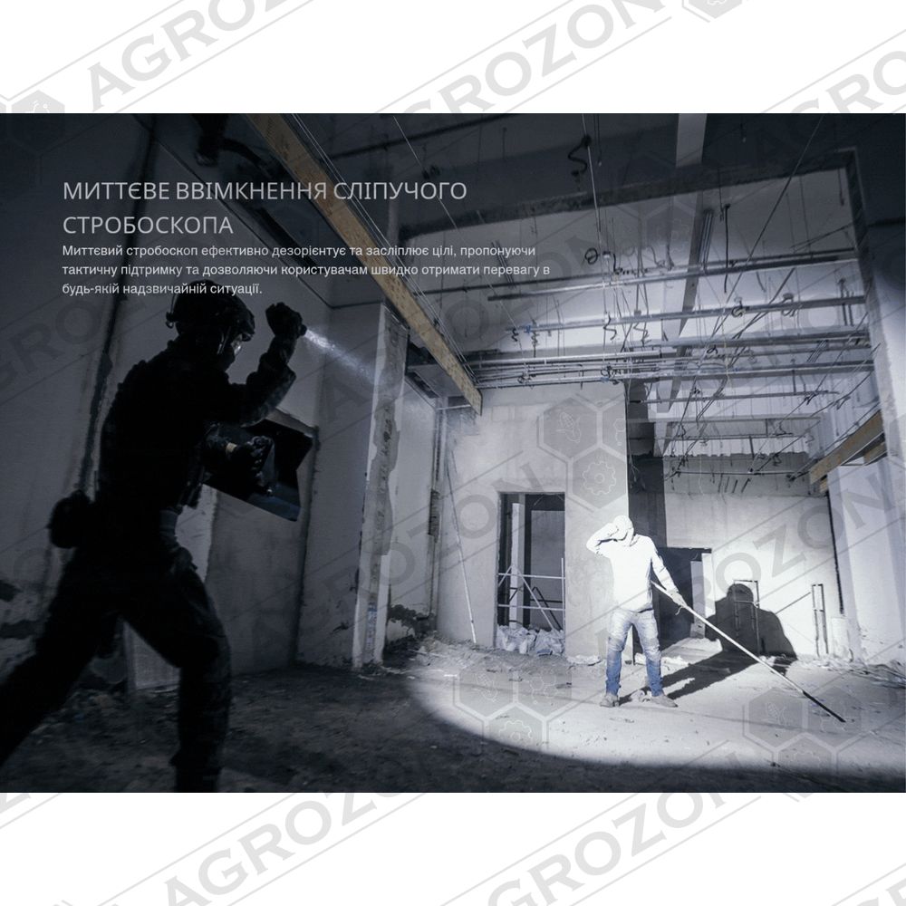 У Fenix TK21R є 4 режими з постійним освітленням і миготливий стробоскоп, який слугує світловим маячком та здатний дезорієнтувати супротивника.