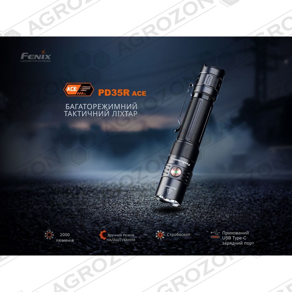 Fenix PD35R ACE — тактичний ліхтар нового покоління. Він є частиною спеціальної серії Advanced Command Edition, розробленої для поліціянтів, військових, рятувальників та професійних туристів.