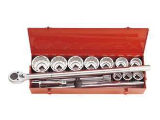- Набір головок 1" 14 одиниць 12-ти гранн. 1-7/16", трищітка, подовжувач в металевому кейсі