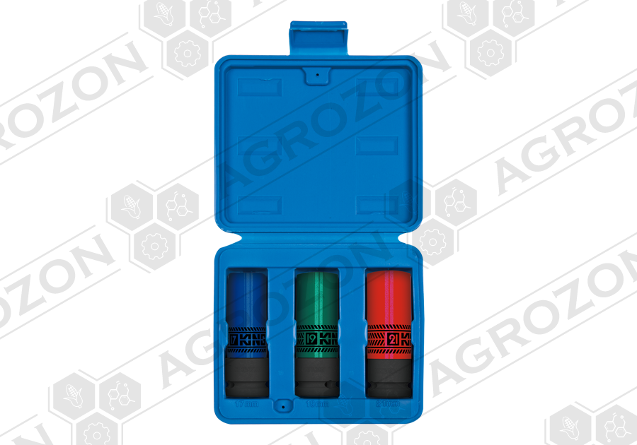 - Набір головок 1/2" 3 одиниць (17, 19, 21мм) для дисків в пластиковому кейсі