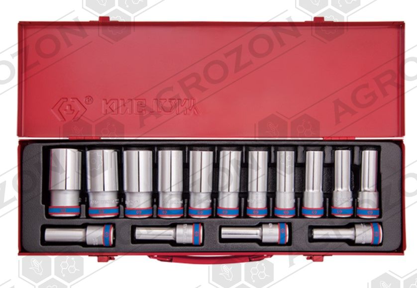 - Набір головок 1/2" 6-гранн. довгих 15 одиниць в металевому кейсі