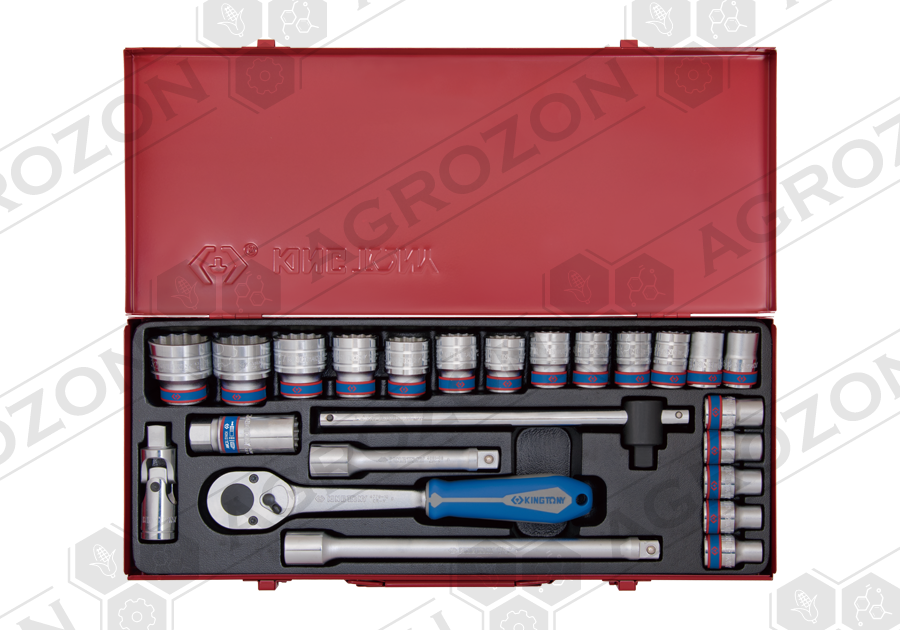 - Набір головок 1/2" з принаддям 24 од. 6гр. 10-32мм. в металевому кейсі KING TONY