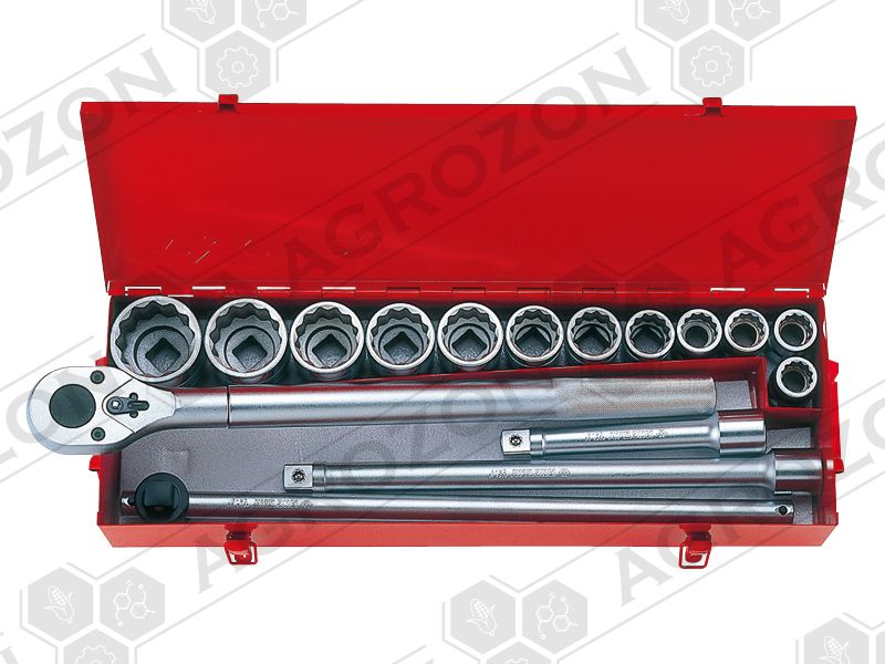- Набір головок 3/4" з принаддям 16 одиниць 12-гранн. В металевому кейсі