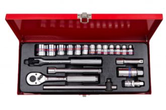 - Набір головок 3/8" 20 одиниць з принаддям в металевому кейсі