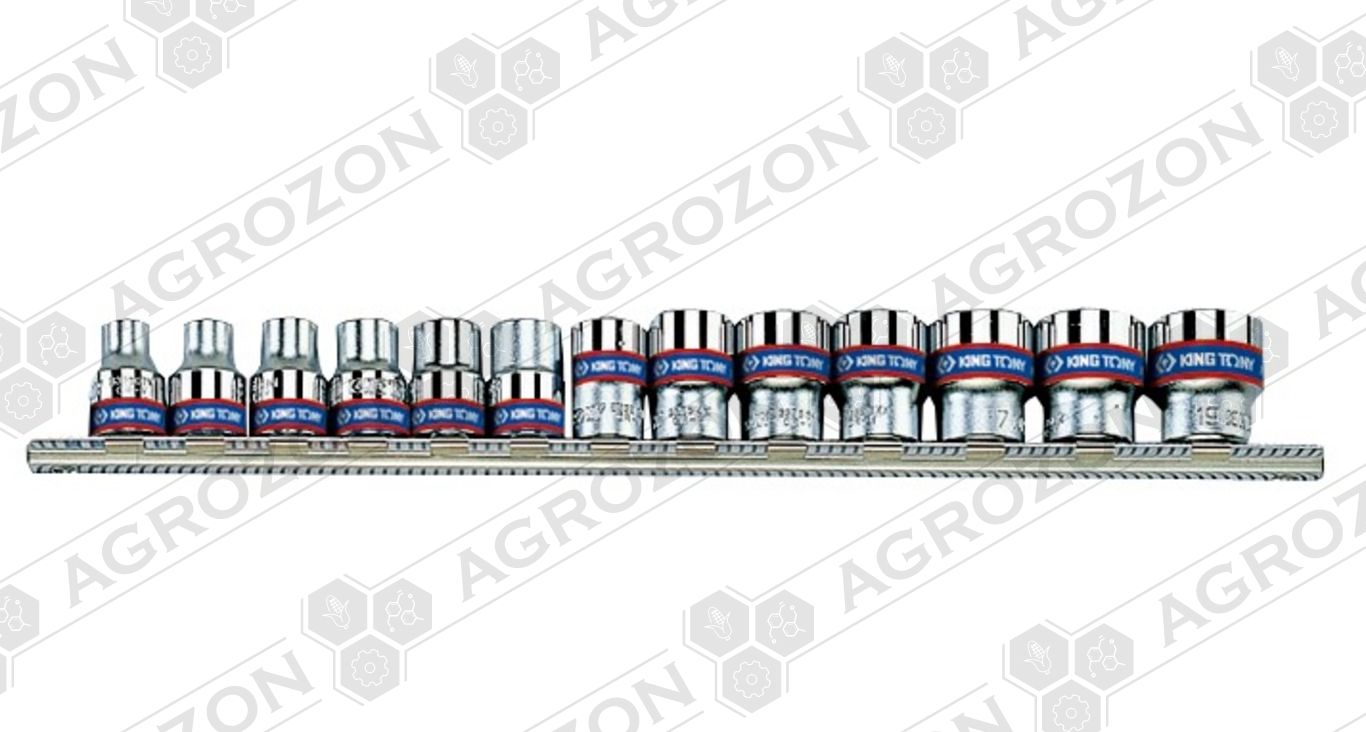 Набір головок 3/8" дюйм 1/4" - 13/16" (13 шт. 12 гран.) KINGTONY 3013SR Головка 3330S (1/4 5/16 11/32 3/8 7/16 15/32 1/2 9/16 19/32 5/8 11/16 3/4 , 13/16) Планка для головок 873