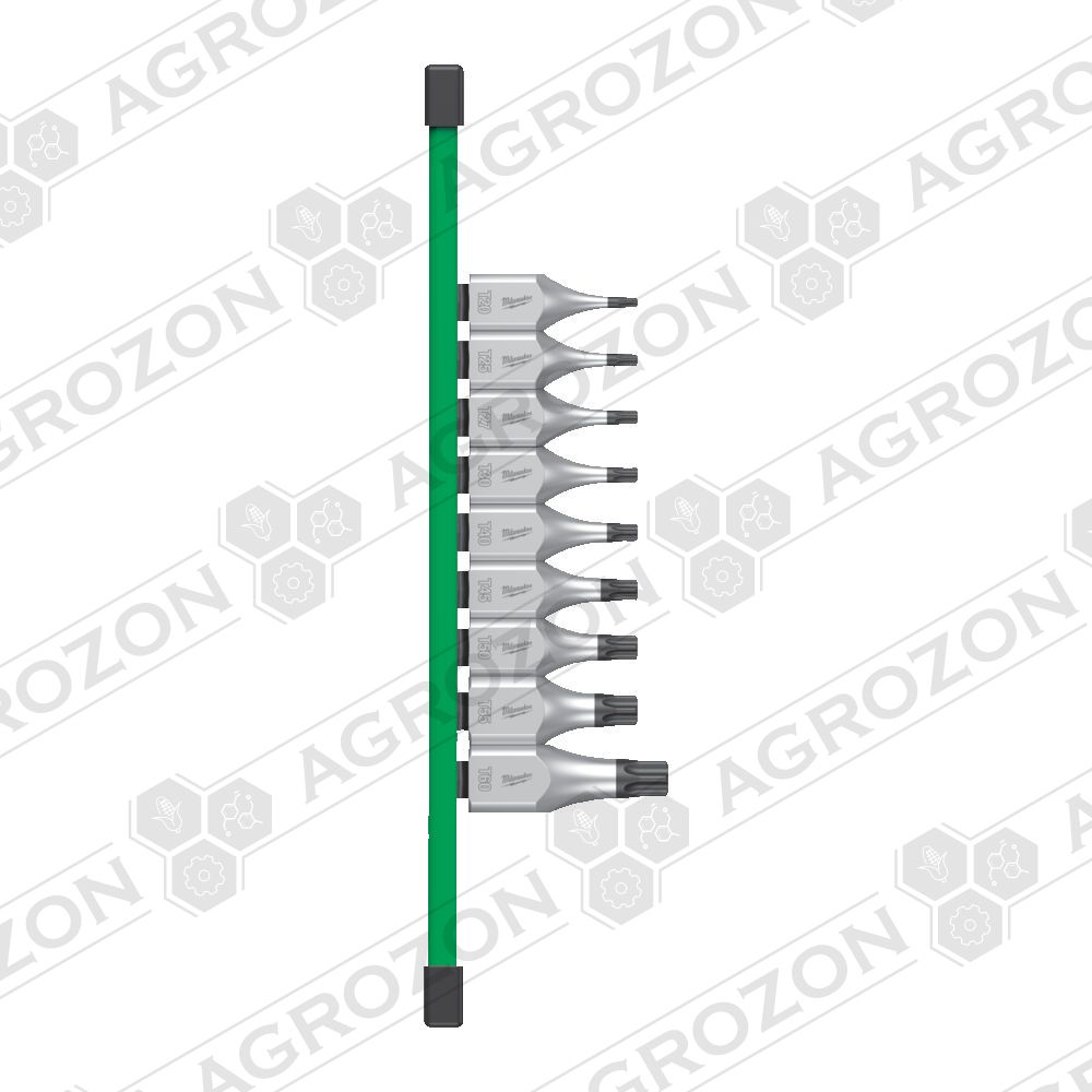 - Набір головок торцевих хромованих 1/2'' MILWAUKEE, з бітою Torx (Т20-Т60) на планці, (9шт)