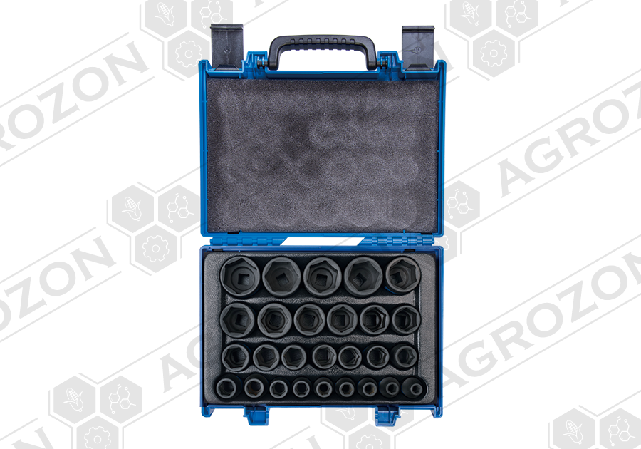 - Набір головок ударних 1/2" 27 од. 6-ти гранні, 08-36 мм в пластиковому кейсі