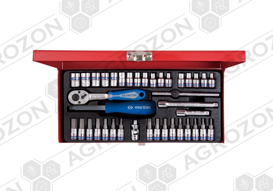 Набір головок 1/4" 4-13 мм King Tony (2539MR) – це універсальний комплект слюсарного приладдя для роботи з елементами кріплення. Набір орієнтований на автосервіс. Буде корисний у будь-якій сфері діяльності, де є потреба у закручуванні або відкручуванні гайок, болтів, гвинтів, шурупів малих розмірів. Торцеві біти TORX без отвору: T8, T9, T10, T15, T20, T25, T27, T30, T40. Біти торцеві HEX : H3, H4, H5, H6, H7, H8, H10. Тріскачка з прапорцевим перемикачем (2779-55G) – 1/4”, 24 зуби, 134 мм. Вороток-викрутка (2179DF) – посадковий квадрат 1/4”, 150 мм. Вороток із плаваючою головкою (2571-45) – посадковий квадрат 1/4”, 115 мм. Кардан (2792) – 1/4”. Подовжувачі (2221-02) та (2221-04) - 1/4”, з довжиною 55 та 100 мм. Габарити ящика – 280х130х41 мм. Вага набору – 1.61 кг.