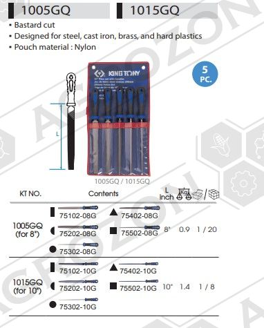 - Набір напилків 5 одиниць 200 мм в чохлі KING TONY