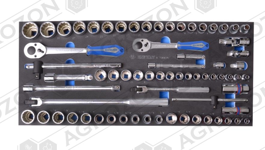 Купити набір торцевих головок із комірами King Tony – найкраща ціна Особливість інструменту у зручній комплектації. Набір підійде для автосервісу, будівництва, виробництва, сервісних центрів, побутових завдань. Це універсальний комплект інструменту, для роботи з яким не потрібні супутні пристрої. Слюсарне оснащення в наборі виготовлене з легованої хромованадієвої сталі. Металевий корпус має захисне хромоване покриття. Рукоятки тріскачок прогумовані. Усі торцеві головки в наборі мають 12-гранну посадку під елемент кріплення. У комплект входять метричні та дюймові торцеві головки, що додає універсальності всьому набору інструменту. Технічні характеристики комплекту Кінг Тоні (9-7069CRV): · Розмір ложементу - 642х286 мм.· Вага набору з ложементом – 7.5 кг. · У комплекті з набором йде ножівка по металу (7911-12). 3330M 6, 7, 8, 9, 10, 11, 12, 13, 14, 15, 16, 17, 19, 20, 21, 22 3330S 3/8, 7/16, 1/2, 9/16, 5/8, 11/16, 3/4, 13/16 4330MR 10, 11, 12, 13, 14, 15, 16, 17, 18, 19, 20, 21, 22, 23, 24, 27, 30, 32 4330SR 3/8, 7/16, 1/2, 9/16, 5/8, 11/16, 3/4, 13/16, 7/8, 15/16, 1