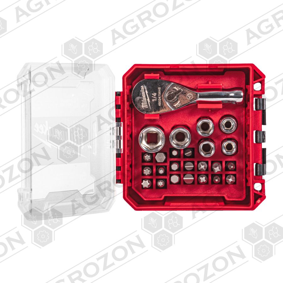 Набір тріскачки та головок Milwaukee, 25 предметів, у коробці Packout Ready Box - 1/4"