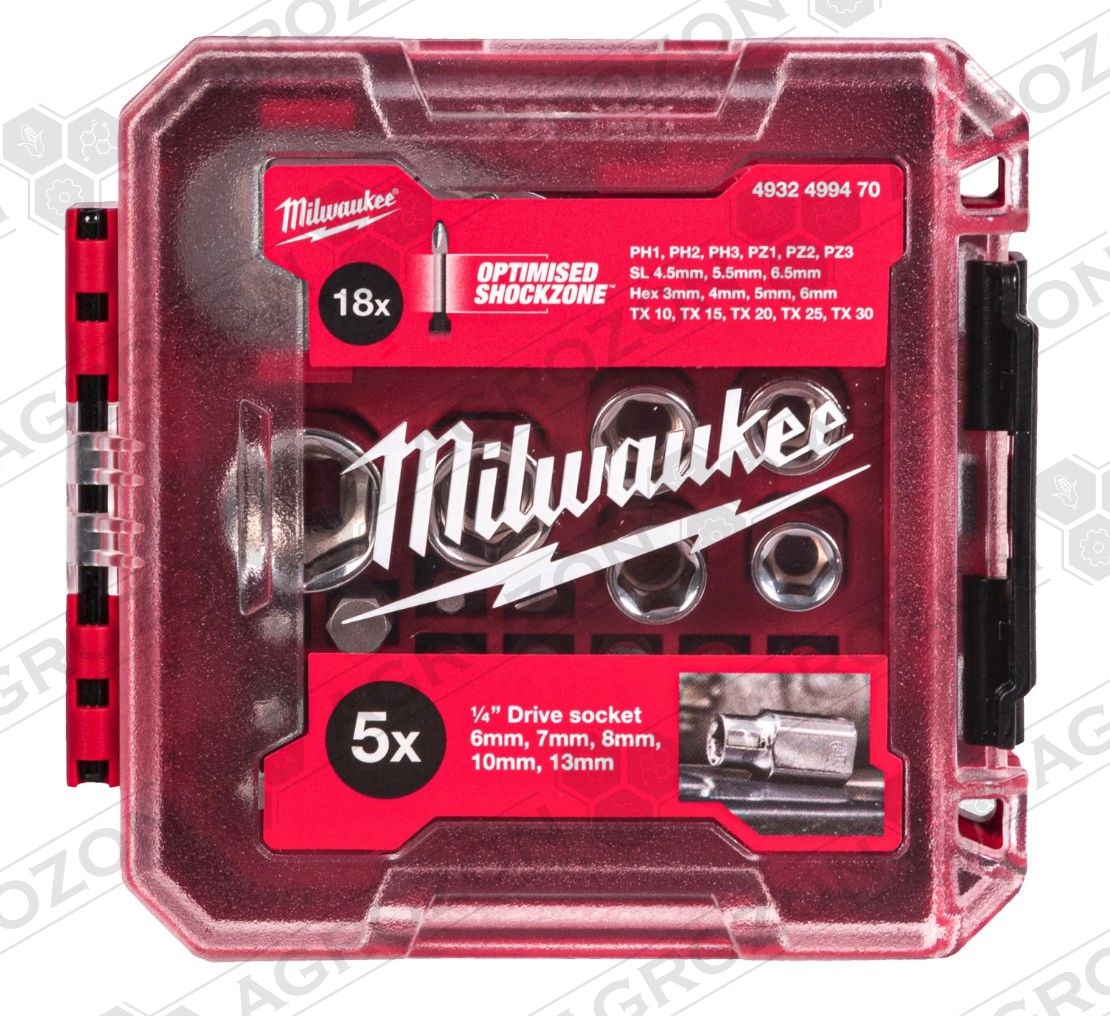 - Набір ударних біт, головок з компактною з тріскачкою 1/4" MILWAUKEE, (25шт) пластиковий кейс